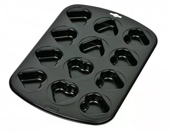 Muffinform Mini-Herzen. Antihaftbeschichtete Muffinform für zwölf kleine Herzkuchen.