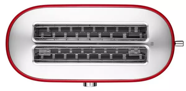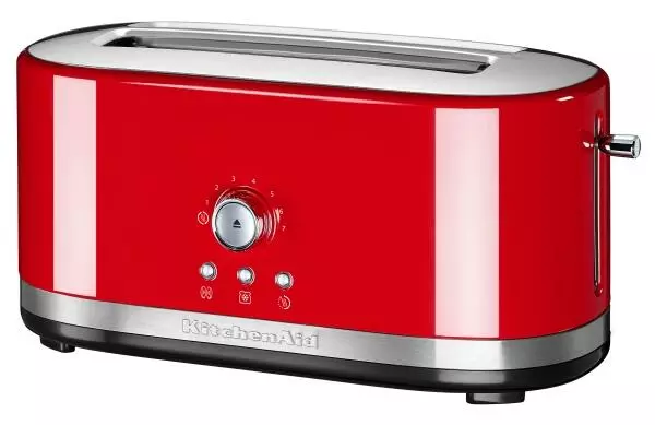 KitchenAid Langschlitztoaster mit manueller Bedienung in empire rot. Mit langen, extra breiten Schlitzen, 7 Bräunungsstufen, Auftau-, Warmhalte- und Bagel-Funktion. Aus robustem und stabilem Metallgehäuse.