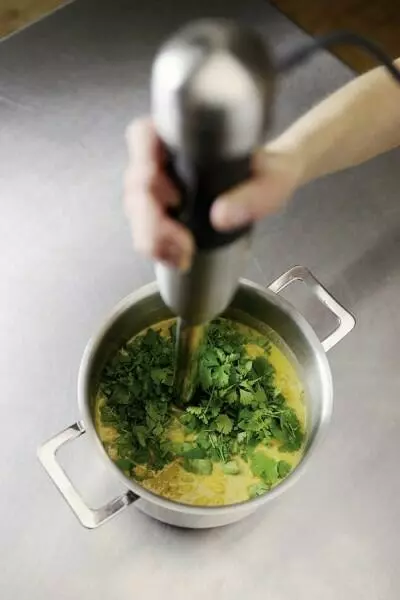 Die Kraft, mit nur einer Hand die unterschiedlichsten Lebensmittel zu pürieren, zu schlagen, zu emulgieren, zu hacken und zu zerkleinern, um daraus Smoothies, Suppen, Cremes, Pestos und Soßen zuzubereiten.