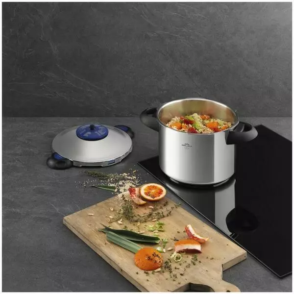 Schnellkochtopf im Überblick: Wer lieber feine, selbst kreierte Rezepte im Kopf behält als Kochzeiten, findet auf der Abdeckhaube des Duromatic Supreme die wichtigsten Kochzeiten für verschiedene Suppen, Beilagen und Hauptspeisen notiert. Die Kochzeit aller anderen Mahlzeiten und Speisen, die Sie mit dem Schnellkochtopf zubereiten können, finden Sie in der Gebrauchsanweisung. Für alle Fälle, ob raffinierte Vorspeisen, köstliche Hauptspeisen oder beliebte Desserts.