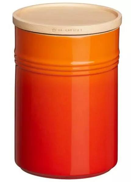 Le Creuset Vorratsdose groß in ofenrot. Ideal zum Aufbewahren von Zucker, Kaffeepulver oder Mehl. Mit aromadichter Silikondichtung im Deckel.