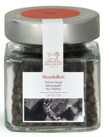 PEUGEOT Roter Mondolkiri-Pfeffer, 65g. Roter Pfeffer aus Kambodscha mit fruchtig-milchiger Note. Der perfekte Begleiter von weißem Fleisch, Geflügel, Kartoffeln und Fruchtsdesserts.