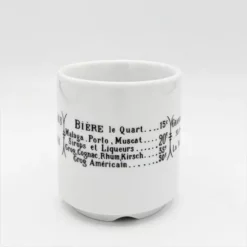 Damals konnte jedes Bistro, jede Brasserie und jedes Restaurant seine Speisekarte in das eigene Geschirr einbrennen lassen. Heute befindet sich auf dem Pillivuyt Dekor Brasserie die Speisekarte des fiktiven französischen Bistros “Grande Brasserie Nationale, 33 Rue de la République – Consommation de Premier Choix”.