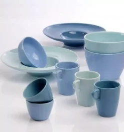 Für die Produktion hat Pillivuyt hat eine eigene, spezielle Technologie entwickelt, um die Farbe in die Glasur zu geben. Anschließend werden die Porzellanteile in ein Bad aus blauer Glasur getaucht und bei 1400°C gebrannt.