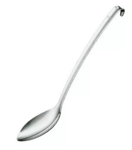 Der Stiel steht in einem sehr flachen Winkel zur ovalen Laffe, dadurch ist dieser Löffel gut zum Vorlegen am Buffet oder zum Übergießen von Speisen geeignet. Fugenlos aus einem Stück gefertigt.