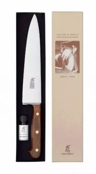 - Pflegehinweise: Nicht in der Spülmaschine reinigen; Griffe von Zeit zu Zeit mit Holzpflegeöl einreiben; Schärfen am Besten mit einem guten Stahl oder der Schärfbank.