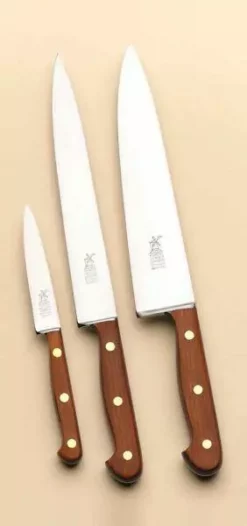 - Pflegehinweise: Nicht in der Spülmaschine reinigen; Griffe von Zeit zu Zeit mit Holzpflegeöl einreiben; Schärfen am Besten mit einem guten Stahl oder der Schärfbank