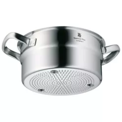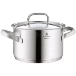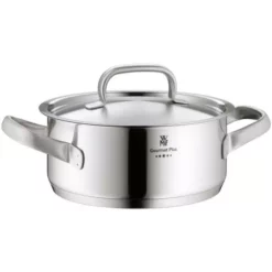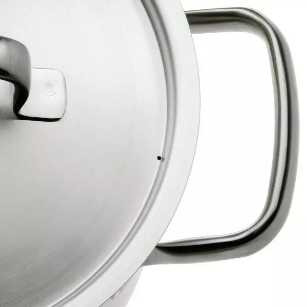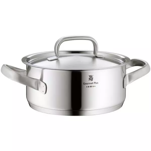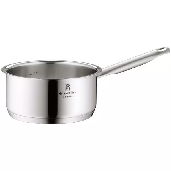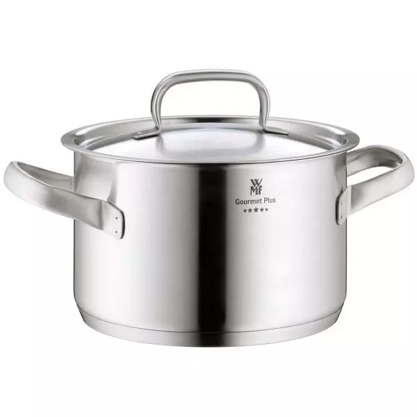 Mit der Gourmet Plus-Serie von WMF zaubern Sie Gerichte auf den Tisch wie die Profis. Alle Kochtöpfe sind aus gewichtigem Cromargan gefertigt. Dieses Material ist beständig gegen Speisesäuren sowie geruchs- und geschmacksneutral. Über den TransTherm® Allherdboden wird die Hitze schnell aufgenommen, gleichmäßig verteilt und lange im Inneren gespeichert. Die stabilen Griffe liegen gut in der Hand und sind innen hohl, damit sie beim Kochen nicht heiß werden. Der schwere Aufliegedeckel verschließt sicher den Topf und lässt sich bei Bedarf aber auch schnell zur Seite schieben. Durch seine Öffnungen zieht der Dampf kontrolliert ab. Dank er Innenskalierung lassen sich Flüssigkeiten passgenau in jeden Topf einfüllen und über einen breiten Schüttrand auch tropffrei wieder ausgießen