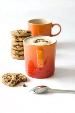 Le Creuset Espressotasse in ofenrot. Die kleinen Le Creuset Becher liegen gut in der Hand und sind besonders für Espresso geeignet.