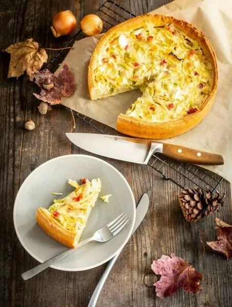 Wüsthof Messer aus der Serie Epicure sind innovative Kochwerkzeuge und vereinen die Effizienz und Leichtigkeit japanischer Messer mit deutscher Qualität und Präzision. So verkörpert Epicure einen neuen Messertypus, der allen Kochstilen gerecht wird und wegweisende Maßstäbe in Form, Funktion sowie Leistung setzt. Die elegante Geometrie verleiht den Epicure Messern eine ausgewogene Gewichtsverteilung, sodass jedes Modell angenehm neutral in der Hand liegt.