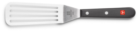 Palette zum Abheben fast aller Gerichte, die in der Pfanne oder auf dem Backblech zubereitet werden. Die langen Schlitze lassen Fett und andere Flüssigkeiten leicht abtropfen.