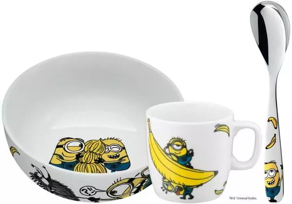 WMF Minions Kindergeschirr mit Löffel 3-teilig, Porzellan, Edelstahl.