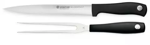 Tranchierbesteck Silverpoint. Das Messer-Set besteht aus einem Schinkenmesser und einer Küchengabel.