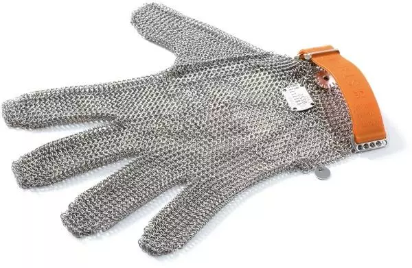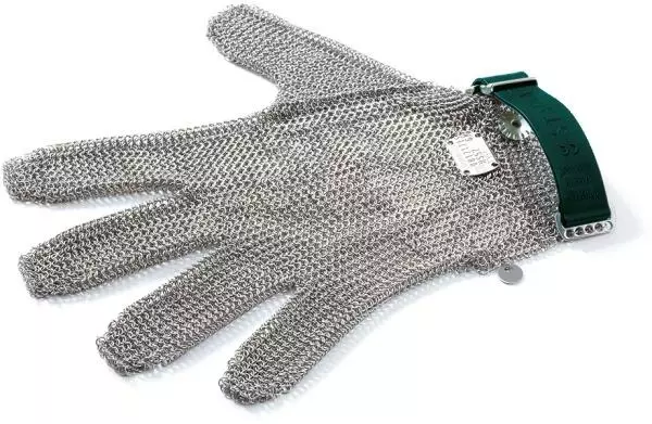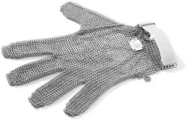 Schwerer Kettenhandschuh zum Schutz vor Schnitt- und Stichverletzungen beim Zerteilen von Fleisch und beim Öffnen von Austern. Professionelle Qualität. Verfügbar in den Größen XS, S, M. L und XL.