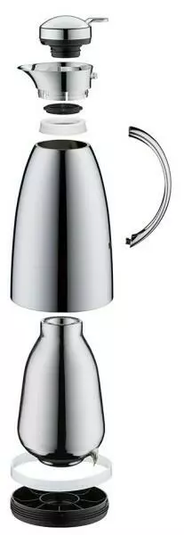 Mit dieser Thermoskanne Gusto wird guter Geschmack in Form gebracht. Dank des alfiDur Vakuum-Hartglaseinsatzes werden Kaffee und Tee bis zu 12 Stunden heiß gehalten. Über die praktische Einhandbedienung und dem intelligenten Air Control Belüftungssystem können die Getränke punktgenau und ohne Spritzer ausgegossen werden. Für eine unkomplizierte, hygienische Reinigung ist der Deckel ist leicht zerlegbar. Darüber hinaus kann sich die Isolierkanne auf jeder Tafel sehen lassen: Die wohltuend sanften Übergänge vom Ausgießer in den glänzenden Korpus und der große, verchromte Griff. Das ist ansprechendes Design in perfekter Qualität! Entwickelt in Deutschland.